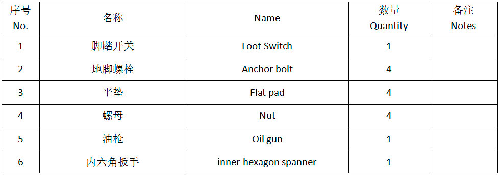 六 隨機(jī)附件,配套件清單Attached accessories list